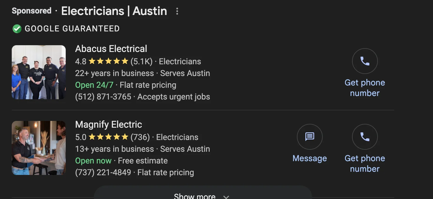 Google Local Services Ads typically generate calls within 24-48 hours of setup.