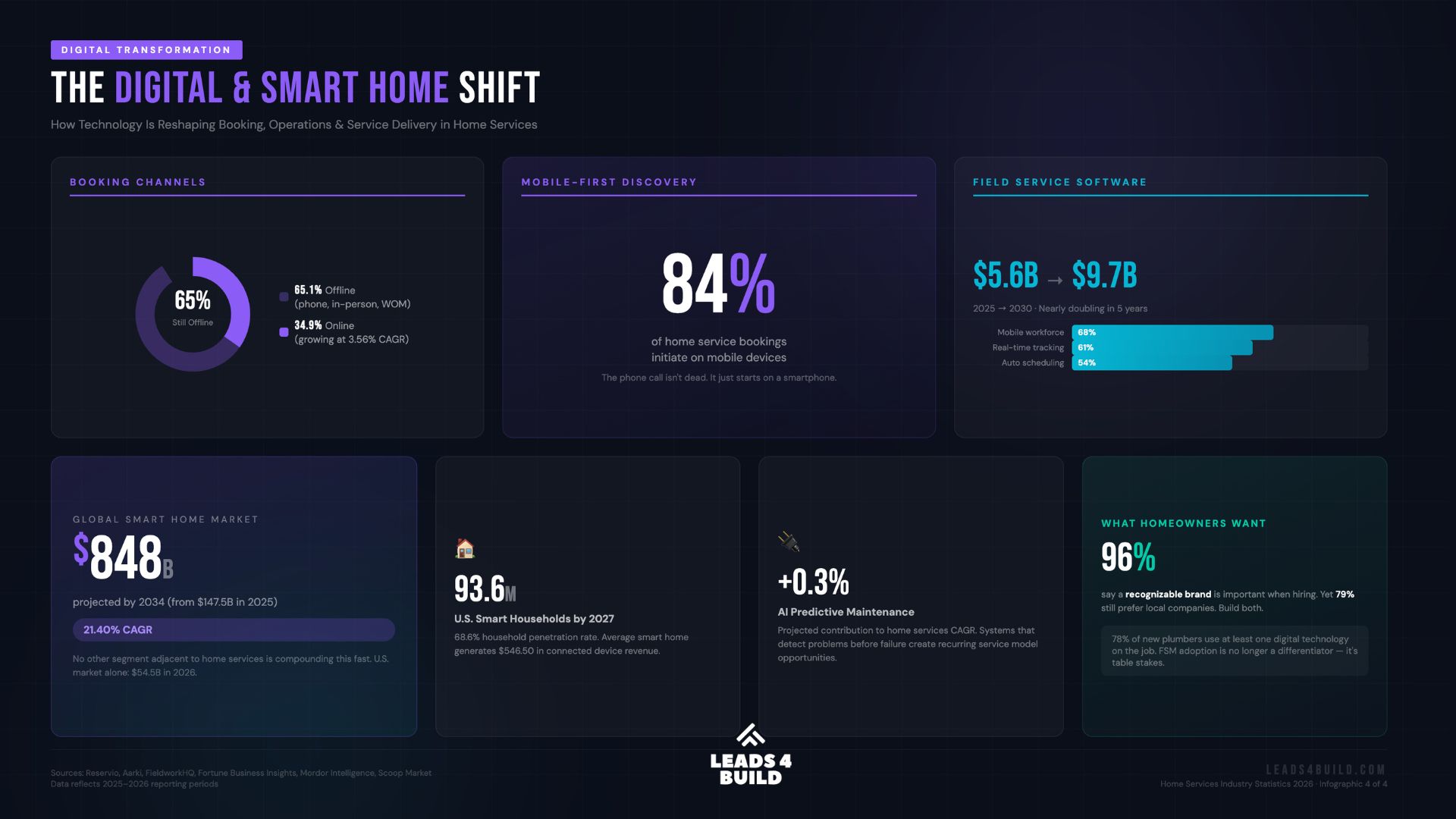 84% of home services bookings initiate on mobile devices in 2026 [7]. Homeowners are searching, comparing, and vetting contractors on their phones before making contact through any channel. Being discoverable and credible on mobile is non-negotiable.